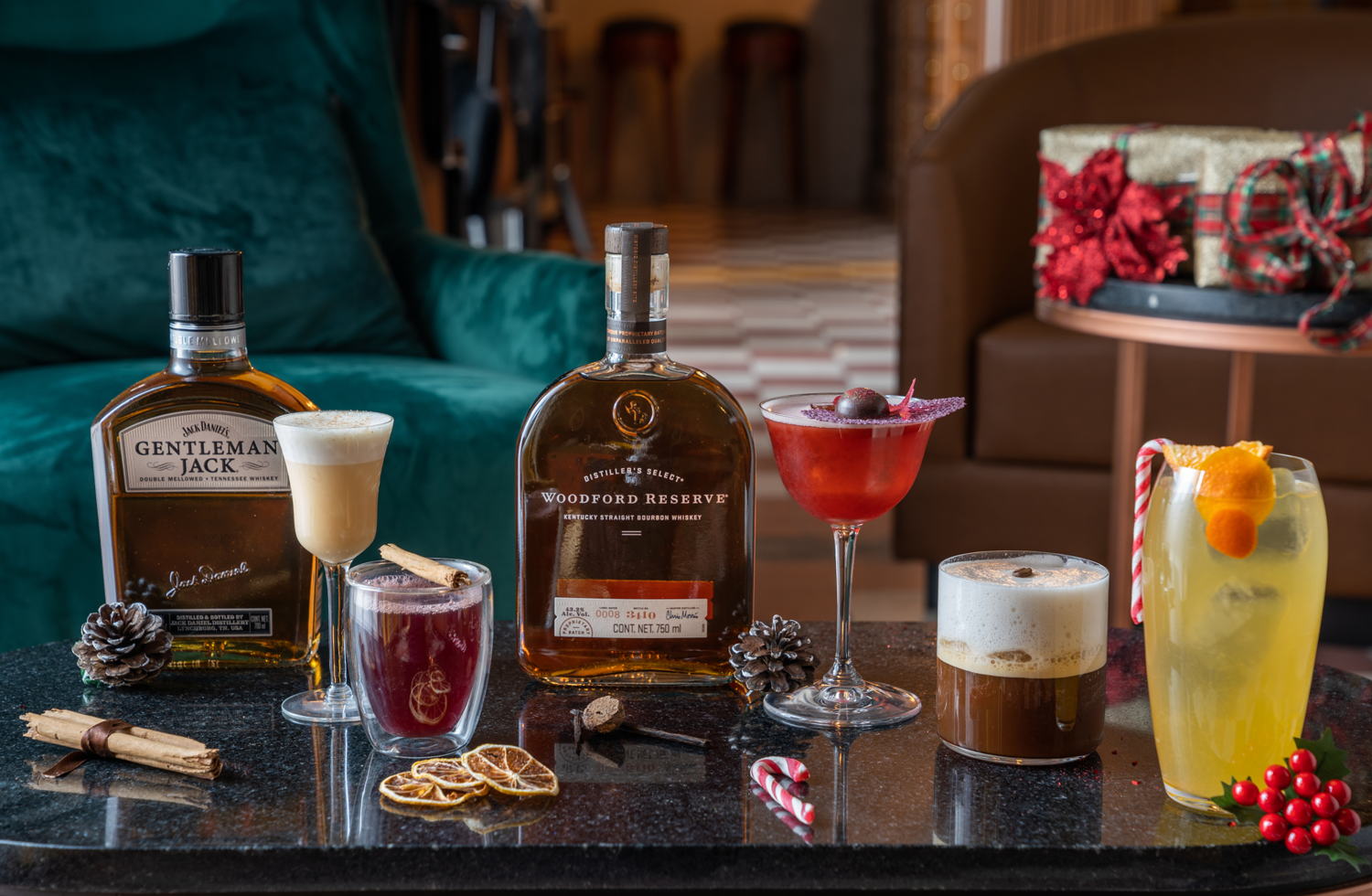 Esta temporada es para disfrutar, compartir y regalar, por ello estos cócteles con Woodford Reserve y Gentleman Jack serán la opción perfecta para cualquier velada y para brindar por aquello que está por llegar.